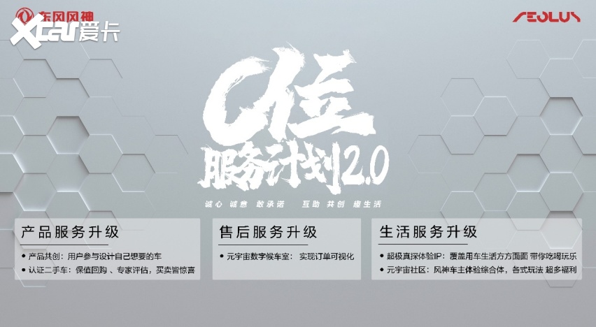 为了增强品牌与用户的联系,“C位服务计划”2.0版本中还包括用户互助、共创社区、用户趣生活等计划,将用户群体进行紧密联结。东风风神的产品不单单是一辆座驾,更是能够让用户生活更精彩的“好朋友”。